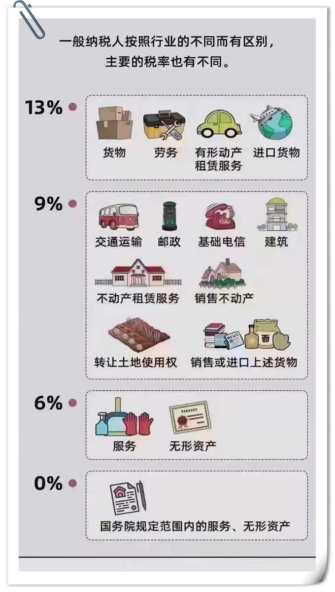 一般纳税人依照行业的不同,增值税税率也不一样 |